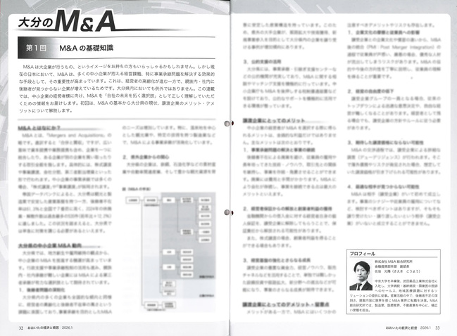 おおいたの経済と経営様にて全6回にわたり、大分県のM&Aについて解説記事を掲載いただいております。